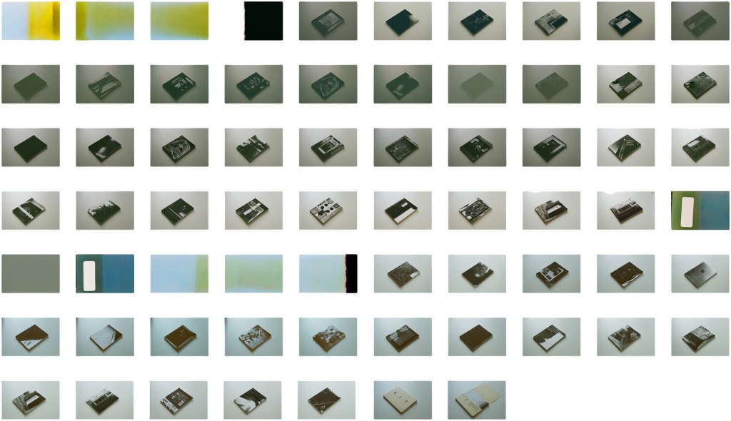 This publication was developed over a year and catalogues the photographs Fiona Connor takes as tools for making sculptures while also considering how she prints and uses these images in her studio. Over five thousand images have been edited and collated into stapled book blocks arranged chronologically. The photographs record architectural details, materials, and specific objects to enable a sculptural language that utilizes processes of mimicry and reproduction. When seen together, they operate like a stream of consciousness recorded through the push of a fingertip on a phone screen.
